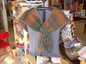 I just finished the crossed shawl in Universal Classic Shade yarn for my lys. It came out rather nicely, if I do say so myself, and I look forward to getting the yarn to make my own. The Classic Shades colors are  wonderful and it’s such a nice yarn to work with that I see it becoming a stock pre-spun yarn in my home. There is a blue that is just winking and waving at me. Soon, I think…..