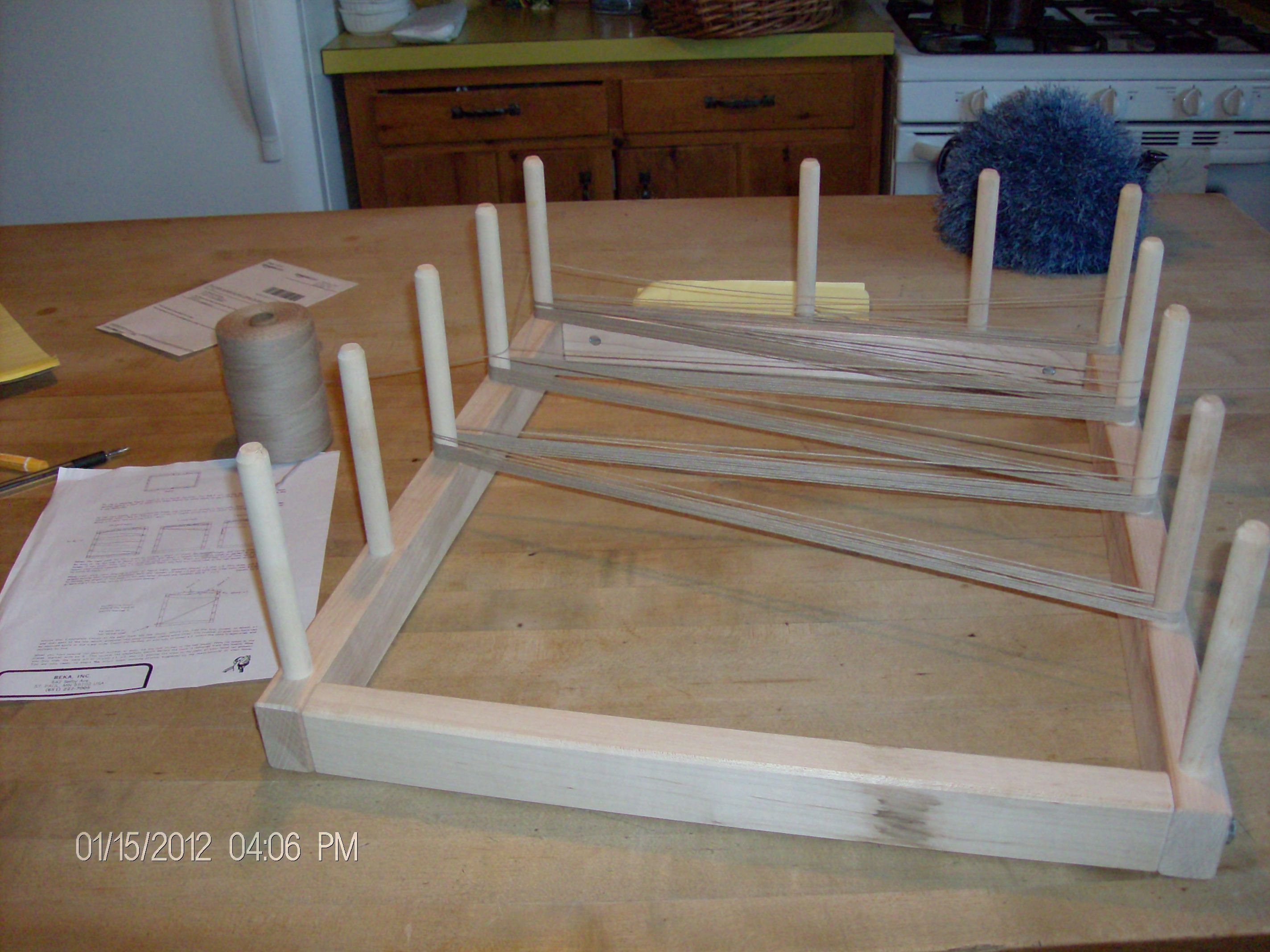 I’ve hit my first snag. After finally figuring out (I think) the right number of epi and the correct sequence on the warping board, I find that my back is screaming after about 25 rounds. I need 384 if my calculations are correct so it would appear that you won’t see a picture of the loom warped today. I will however continue to return to the warping board to continue my wrapping so that with any kind of luck and a good breeze I will have much more interesting news to share with you on Thursday.