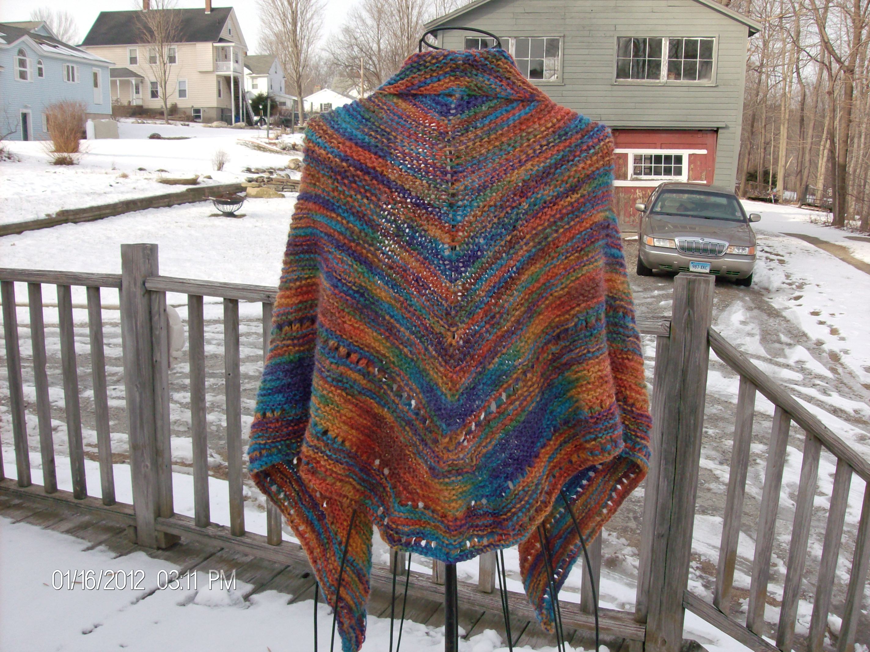 Next up I took some of the Dazzleaire yarn that I knitted my last triangular shawl out of and started the pattern again. I have about 4 skeins of that and I loved the colors. I worked on that on Tuesday and Wednesday while watching TV and it was coming along nicely until I realized that it would still be shorter than I wanted when it was finished. I don’t think that they make this color Dazzleaire any longer so here I go again….ripping it apart.