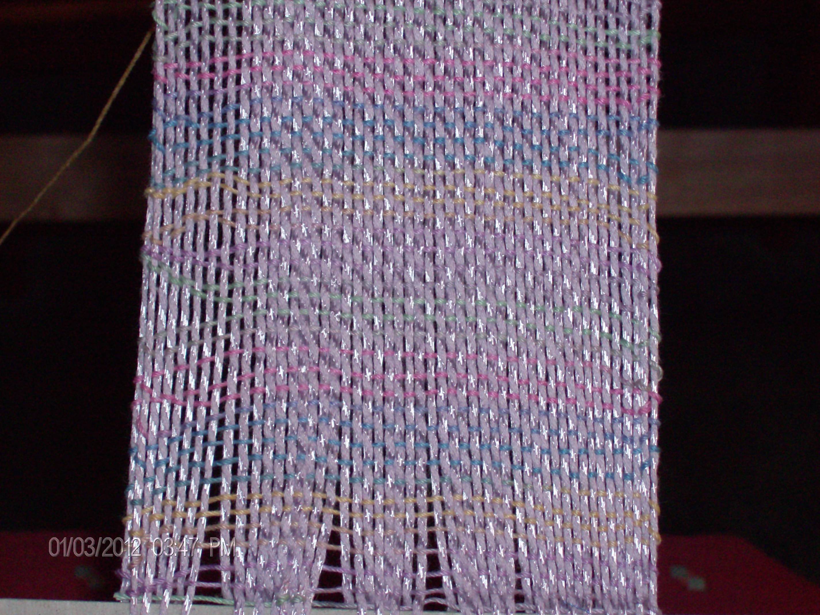 I have a few questions for you . How do you focus on one project? When you do focus, do you stay with a project until you finish it? How many projects do you have going right now? I’m asking these questions because I found Finish it Friday at http://alifefulloflaughter.com. This delightful lady has a great plan and I sincerely plan to follow her. I know right off of the top of my head I have 2 projects going. On my Rigid Heddle loom I have my first project done with crocheting cotton. It’s very pretty and I love the weight so looking for more ideas for this cotton is high on my list. Maybe this will be the project I try to finish for tomorrow. This may need some adjusting. Interesting how the picture really shows the weave. Hmmmm.