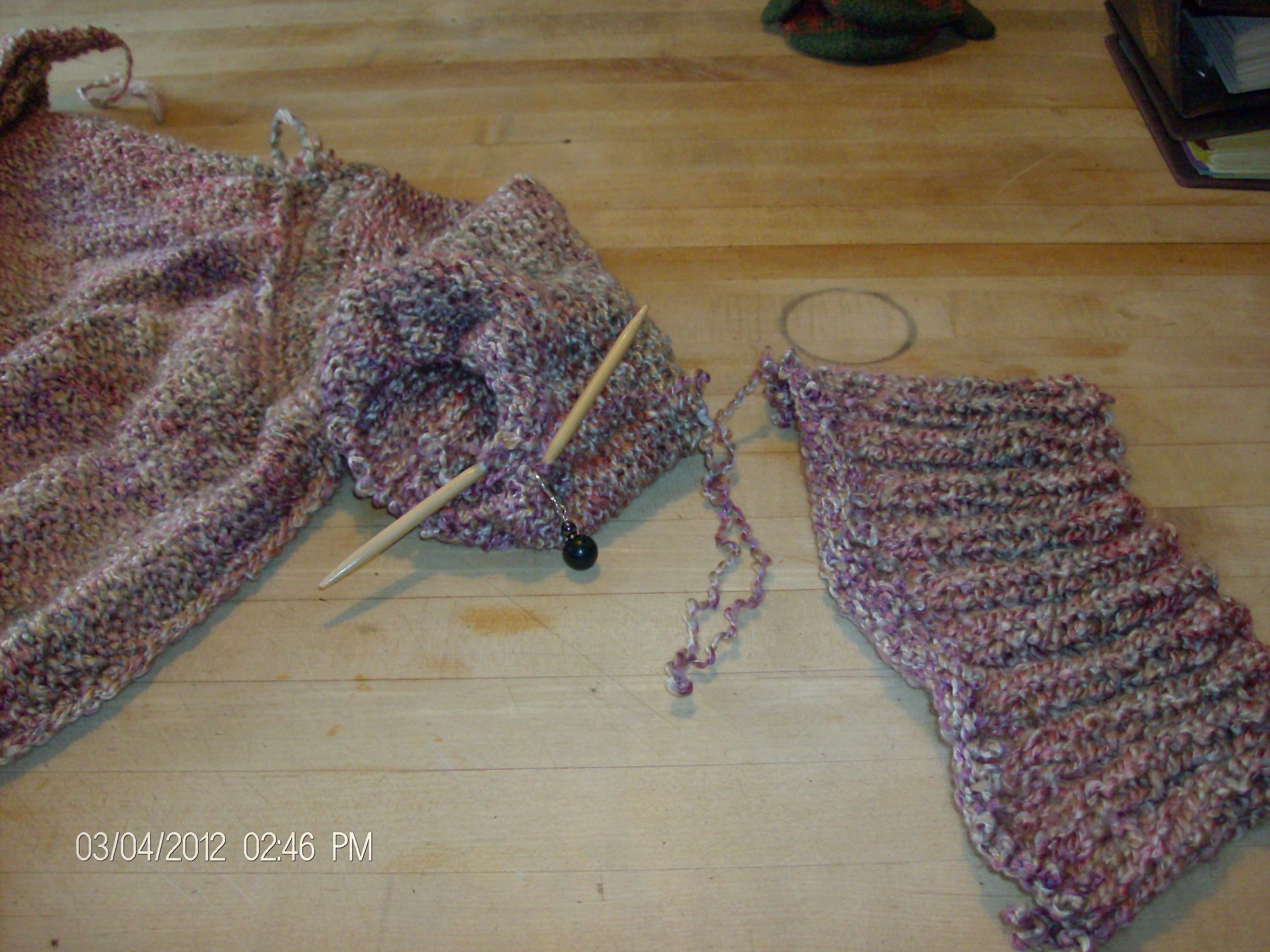 This morning I began crocheting the front and back pieces together. The seams worked up nicely and neatly. Again I was thrilled…right up until the little dim bulb in my brain made the connection between the number of stitches in the sleeves with the armholes. Ack!!!. I put it all in the bag and pondered it for a bit. I worked on a scarf for a friend. I did dishes. I know myself well enough to know that if I put the bag with the sweater pieces upstairs it would languish there for a year or two until I decided to make it into a shawl or wrap. This was not going to happen with the first sweater I was making for myself.