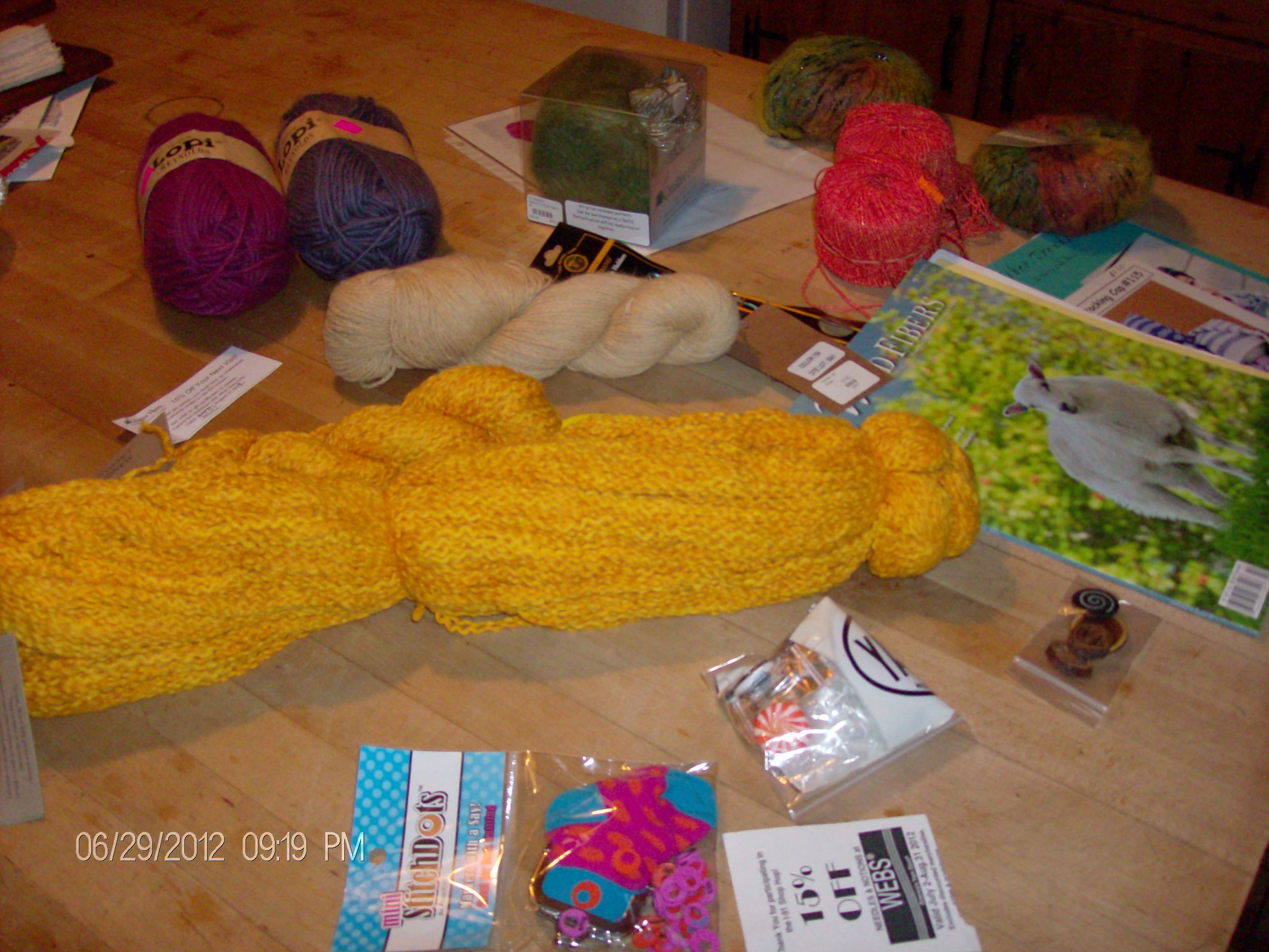 This would be the perfect opportunity to start a cabled scarf. It’s been too long since I’ve worked a cable and since I can work with some of the wonderful yarns I purchased on the Shop Hop – I can move inside if it rains to my dry livingroom – I think this should be my plan. I have a lovely tan yarn that I will be able to see the stitches in and plenty of peace in which to reacquaint myself with my cable holder.
