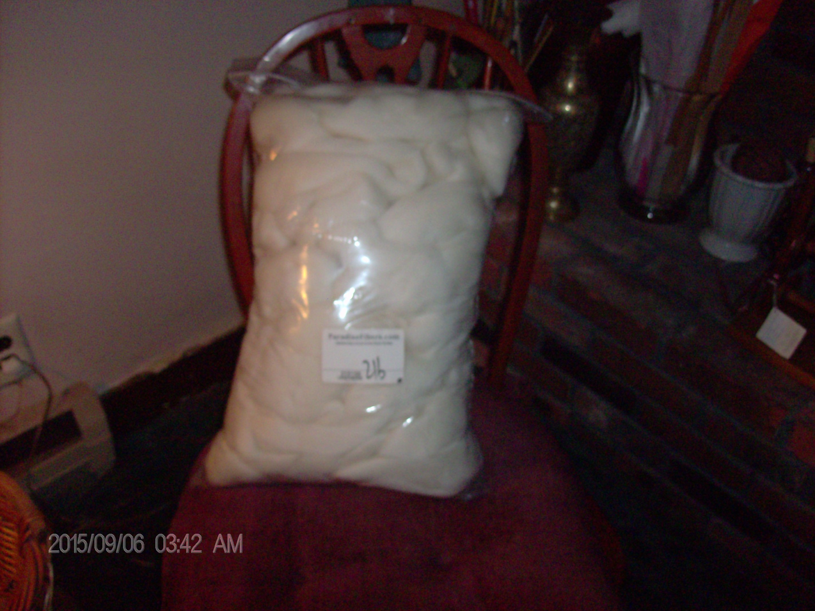 So, I’ve tidied my spinning corner a bit and given up on the chocolate Jacob that I was spinning just until I get through this next week. I can’t remember where I got this 2 pound bag of Corrie cross roving, but once I signed up for Spinzilla and started rooting around in my baskets of roving this bag began winking and waving at me. The goal for both Spinzilla and personal is to get the 2 pounds spun before Sunday, Oct. 11th, at 11:59pm. This will work twofold for me. I should be able to get the mile of yarn goal and I will have enough of my spun yarn in dyeable form to make myself an item from yarn completely processed by me from roving to finish. Lofty goals I have today.